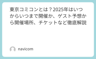 東京コミコンとは?2025年はいつからいつまで開催か、ゲスト予想から開催場所、チケットなど徹底解説