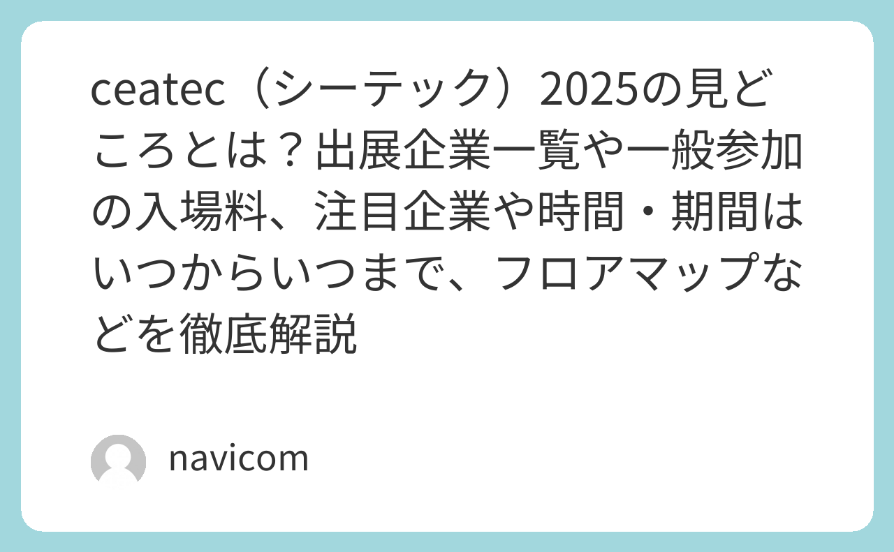 - 業界関係者(新規事業・購買):出展者リストを事前チェックし、B2B商談(Business matching)を予約。事前に企業のプレスリリースやCEATEC出展情報を読む。