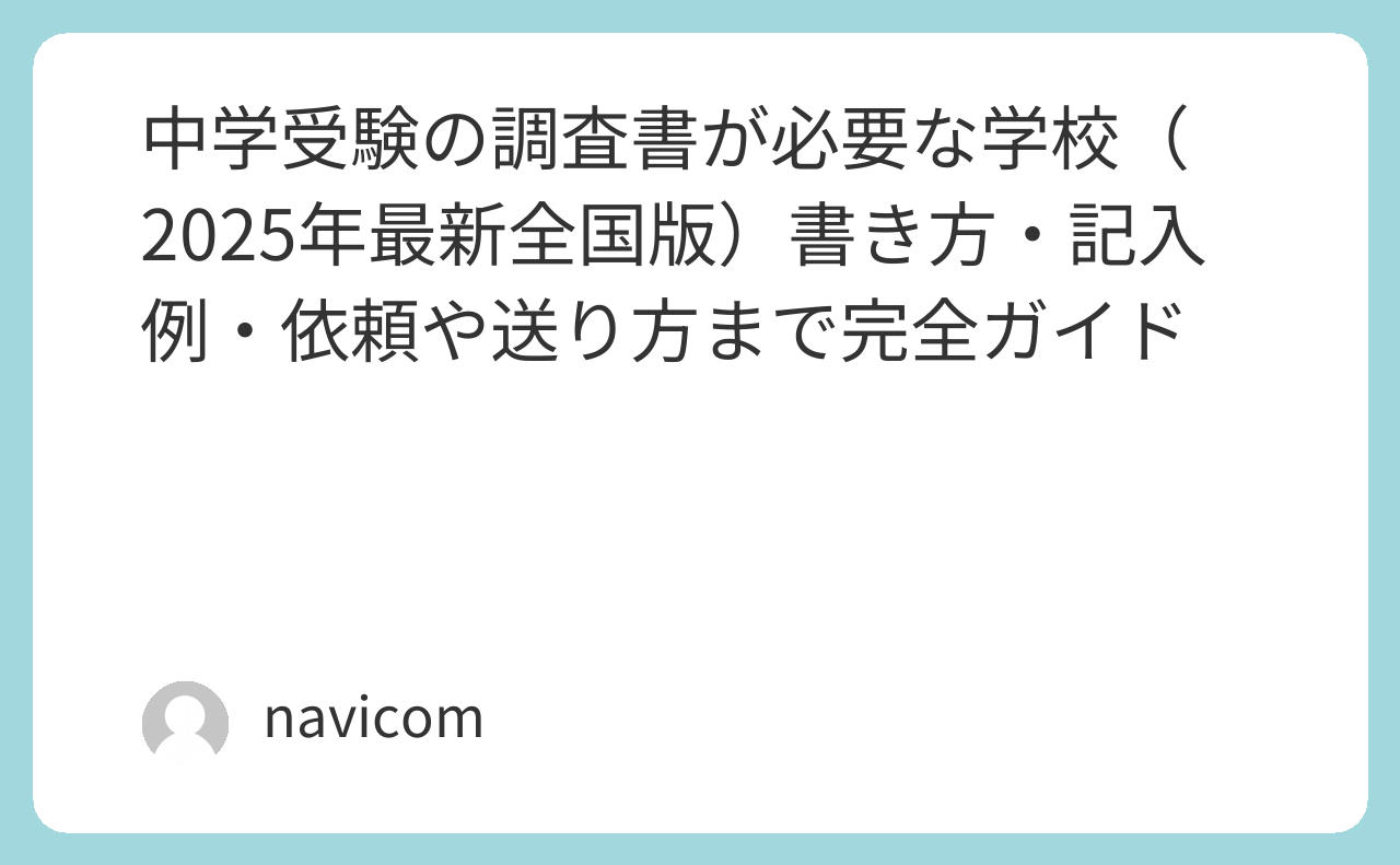 中学受験における「調査書」は、小学校から中学校へ提出する正式な書類で、学習成績・生活態度・出席状況・特技・習い事・総合所見などをまとめたものです。