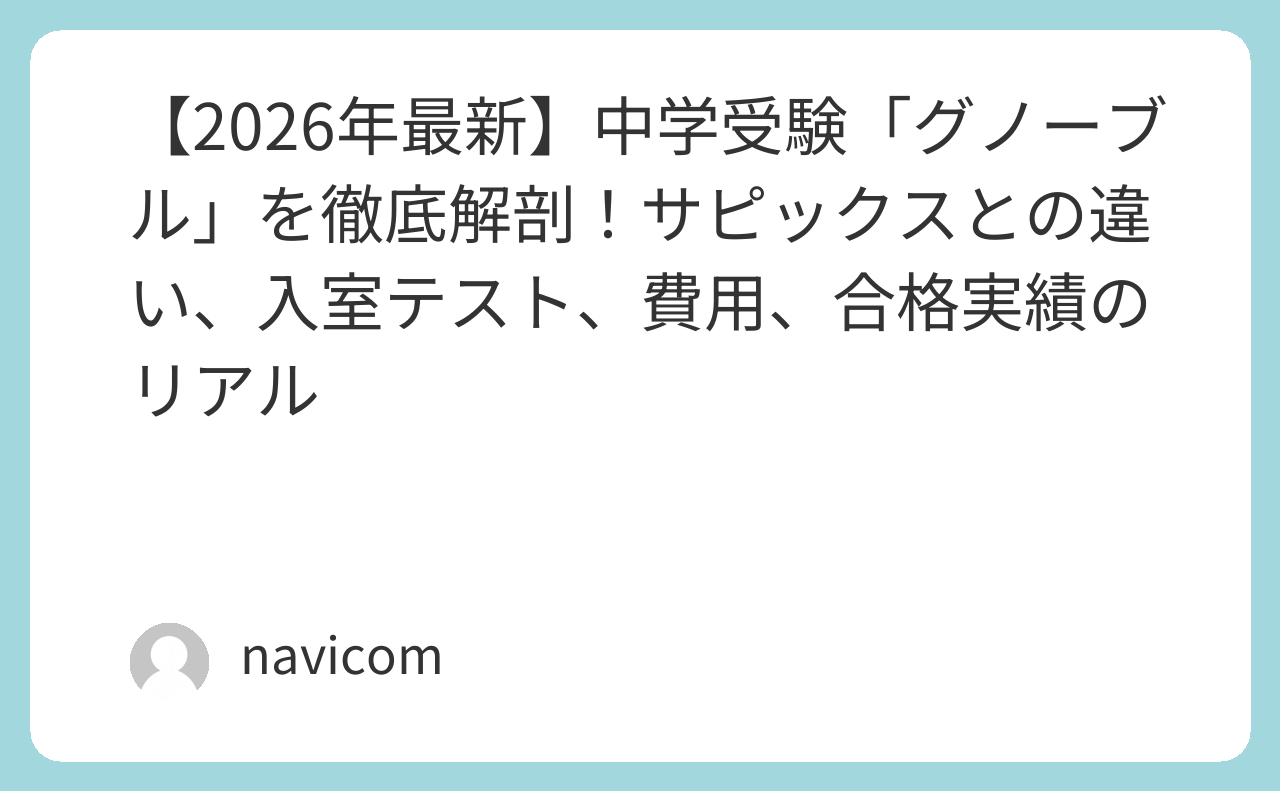当ブログ「中学受験教育ナビコ」が独自に検索データを調査したところ、「中学受験」「グノーブル」「サピックス」「入室テスト」「費用」、そして通いやすい**「校舎」**の情報を一生懸命探していらっしゃるようです。