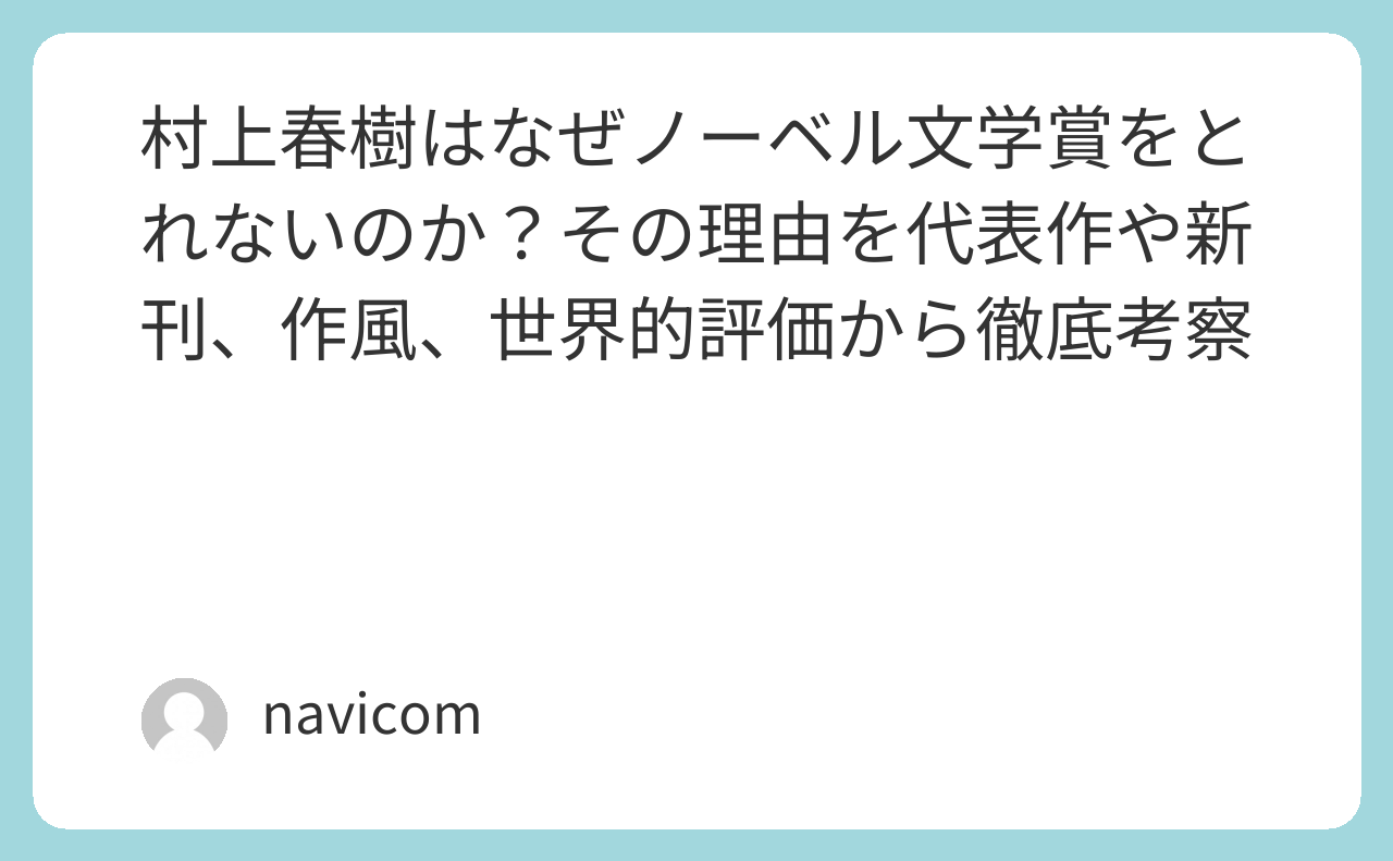 この記事を読めば、村上文学の本質と、文学賞の裏側、そして世界文学史のなかでの村上春樹の位置づけが見えてくるでしょう。