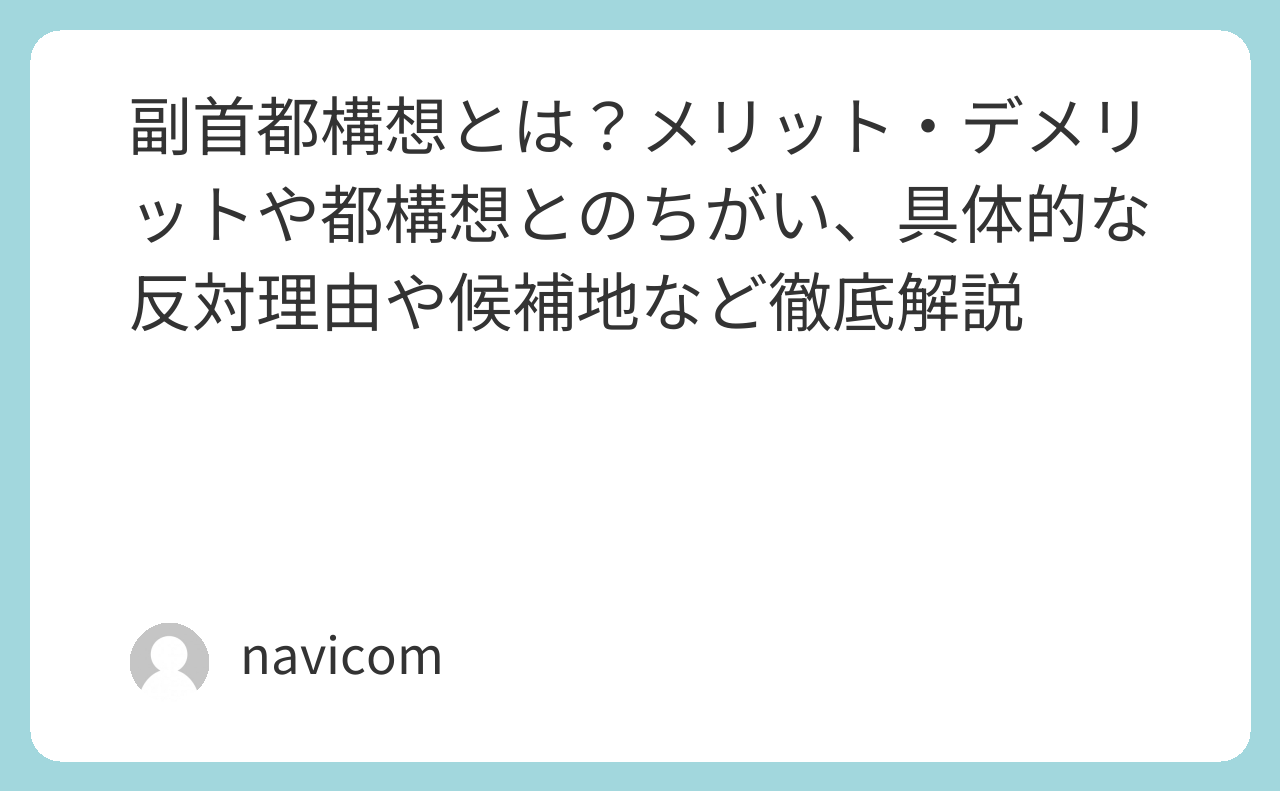- 地方間の不公平感:どの都市を副首都に選ぶかで地元間の利害対立が生じる。