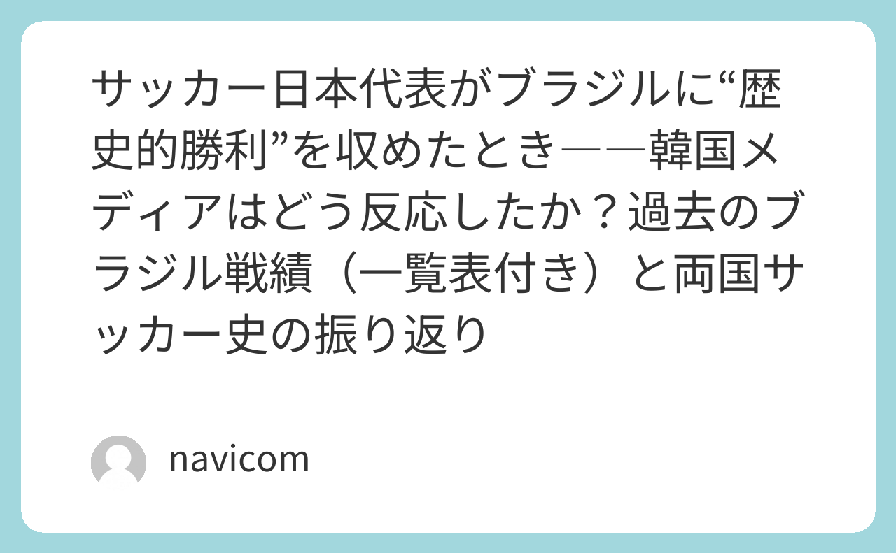 - アジアにとっての象徴性:アジアの代表がブラジル(南米の強豪)に勝つことは、地域の自信につながる象徴的な出来事。特に日韓のライバル関係においては「比較材料」として語られやすい。サッカーキング