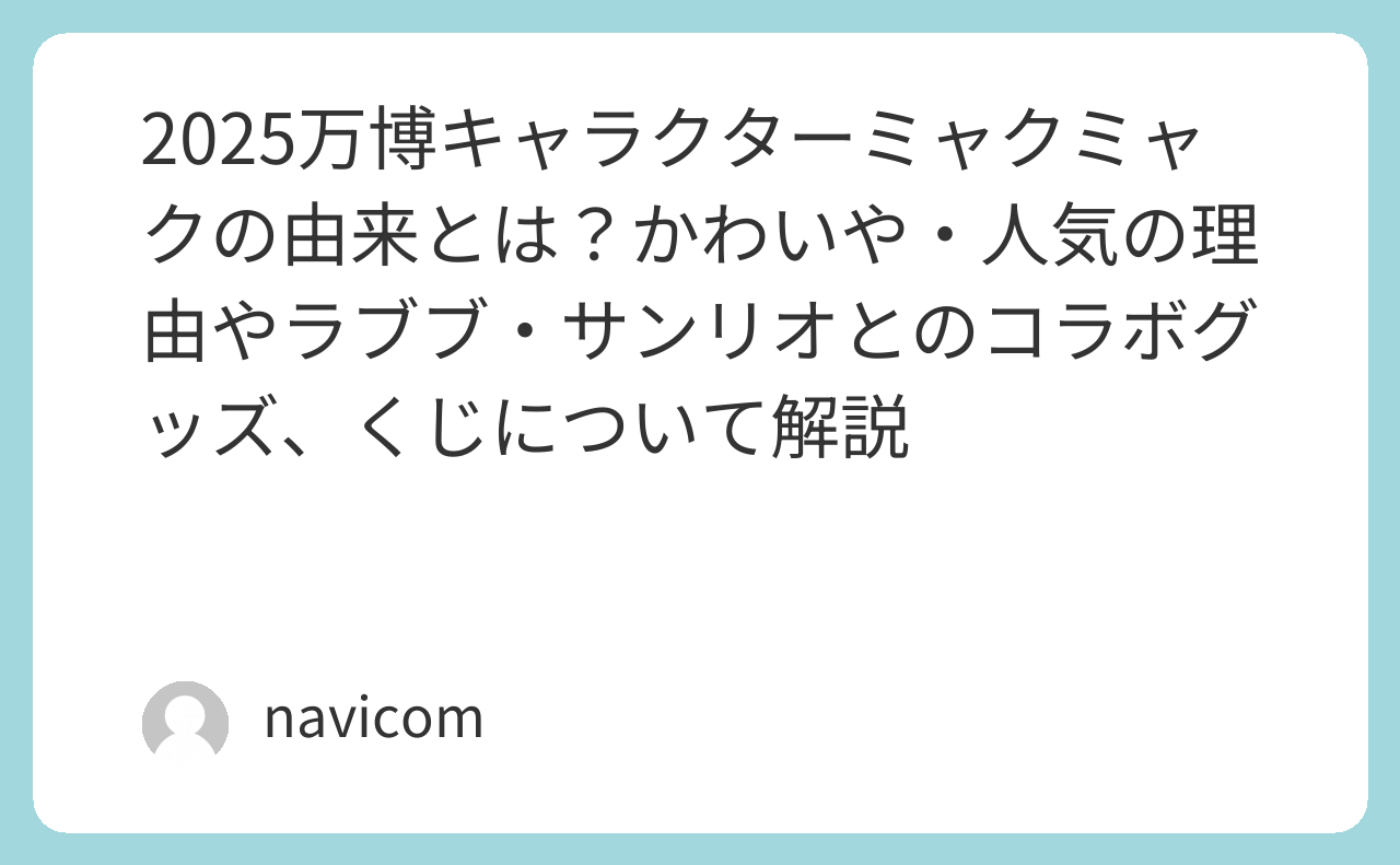 本記事では、ミャクミャクの由来や人気の理由、ラブブ・サンリオとのコラボグッズ、限定くじ情報まで、幅広く解説。グッズ購入やイベント参加のポイントも紹介し、初めての人でもミャクミャクの魅力を余すことなく楽しめる内容となっています。
