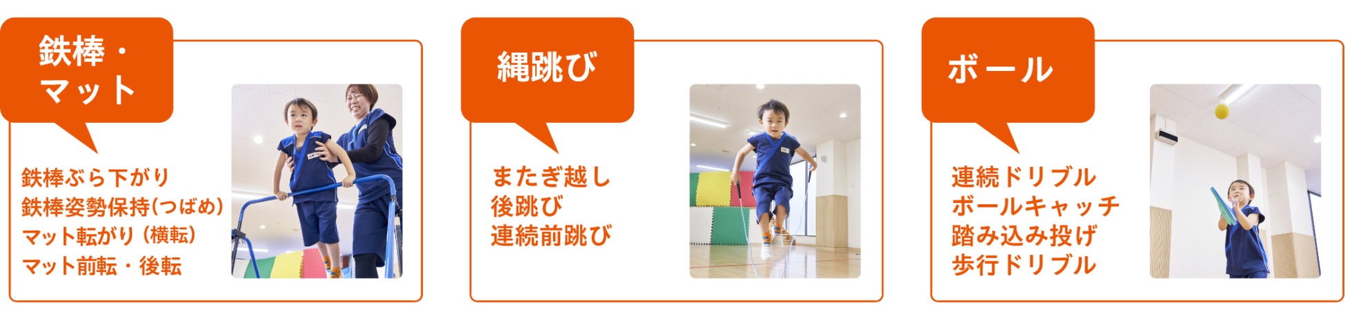 お子さまの苦手意識の克服に時間を要する種目「鉄棒・マット」「縄跳び」「ボール」を厳選