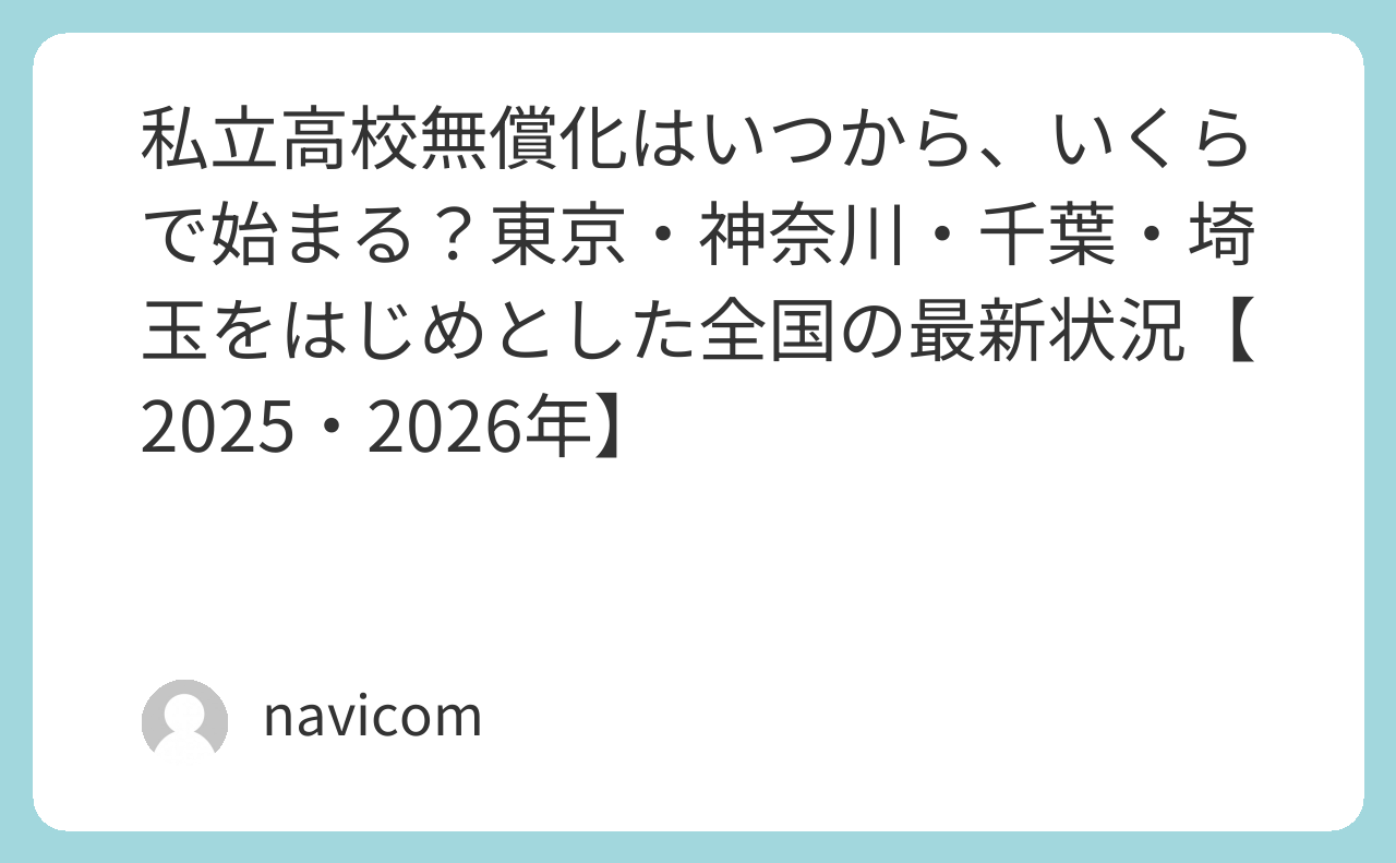 本稿では、「私立高校無償化 いつから?」「2025/2026 年」「東京都・神奈川・埼玉・千葉」などを中心に整理しました。