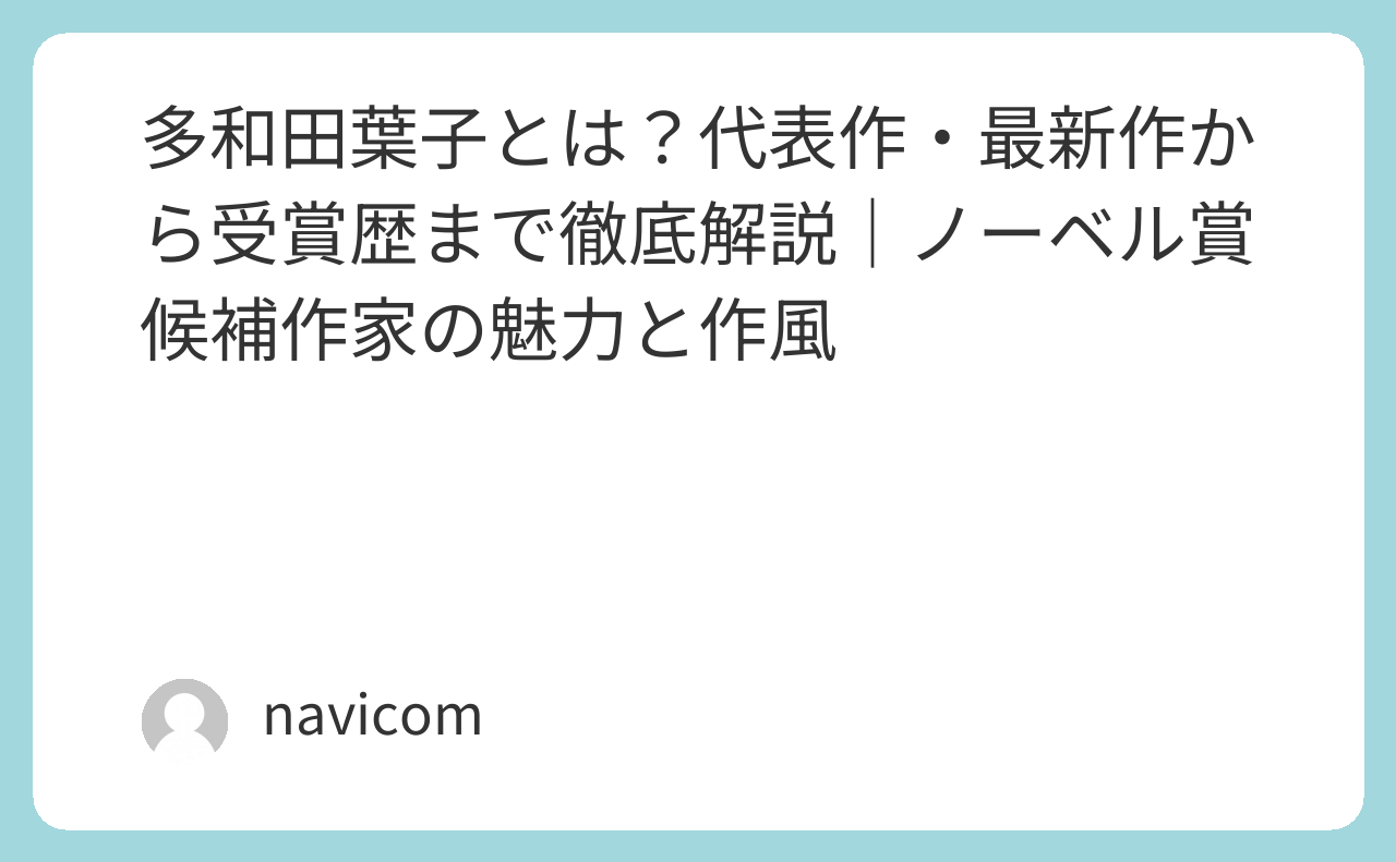 本記事では、多和田葉子さんの代表作や最新作、三部作や短編など幅広い作品群を詳しく紹介。さらに、作風や評価のポイント、ノーベル文学賞の候補としての位置づけも解説します。読み終えた後には、多和田葉子さんの世界を深く理解し、どの作品から読み始めるべきかがわかる内容です。